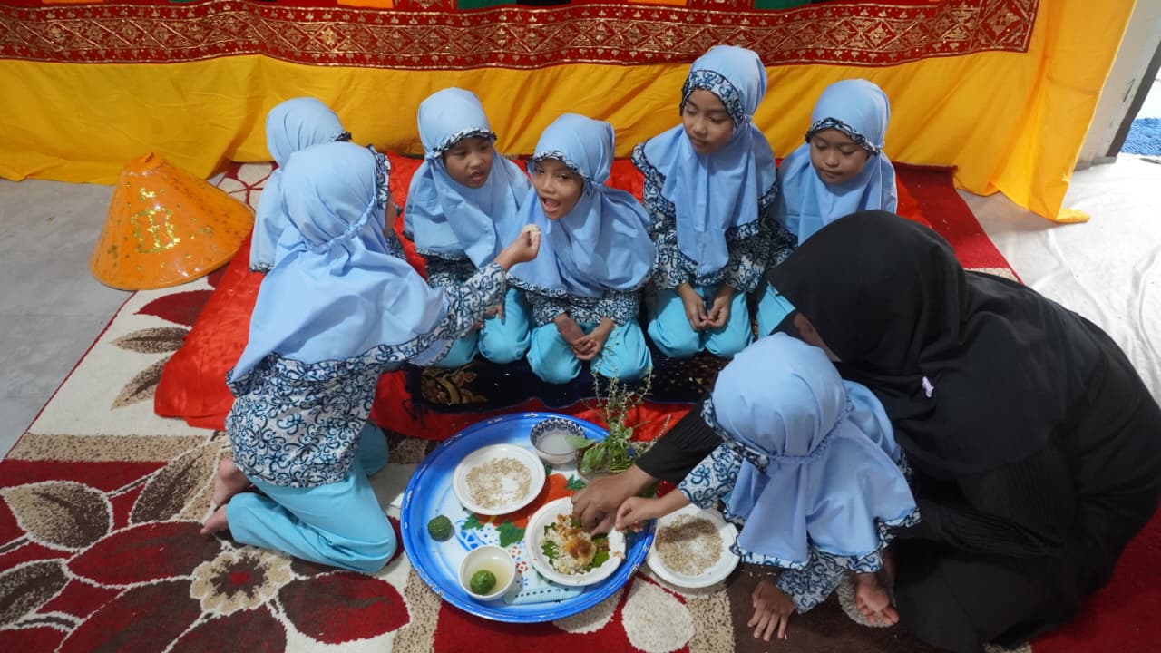 Acara tersebut bertujuan memperkenalkan budaya lokal kepada anak-anak sejak usia dini, sekaligus menanamkan nilai-nilai spiritual dan kebersamaan. Dalam suasana sederhana namun penuh kehangatan, para siswa mengikuti setiap rangkaian kegiatan dengan antusias.